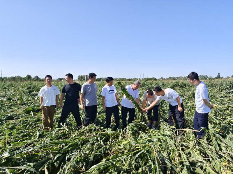 8月上旬,我省庆阳和平凉地区遭遇极端天气,部分县区突降集中性暴雨并伴随冰雹和大风,给农业生产及项目实施带来了严重影响。8月6日20时到7日05日,泾川高平降雨214.5mm,伴随1小时冰雹和大风,玉米体系等相关项目百亩示范基地玉米全部倒伏,给项目实施带来了严重影响,与此同时镇原试验站、庆阳农科院和盛基地先后也受强降雨影响,玉米不同程度倒伏。针对玉米倒伏、叶片被冰雹撕裂等灾害问题,樊廷录要求要做好受灾情况调研,查明倒伏品种,为以后应对此类气象灾害储备品种和栽培技术;开展玉米灾后恢复补偿效应研究,积累数据;要加强病虫害监测和防止工作,争取将玉米产量损失降到最低。