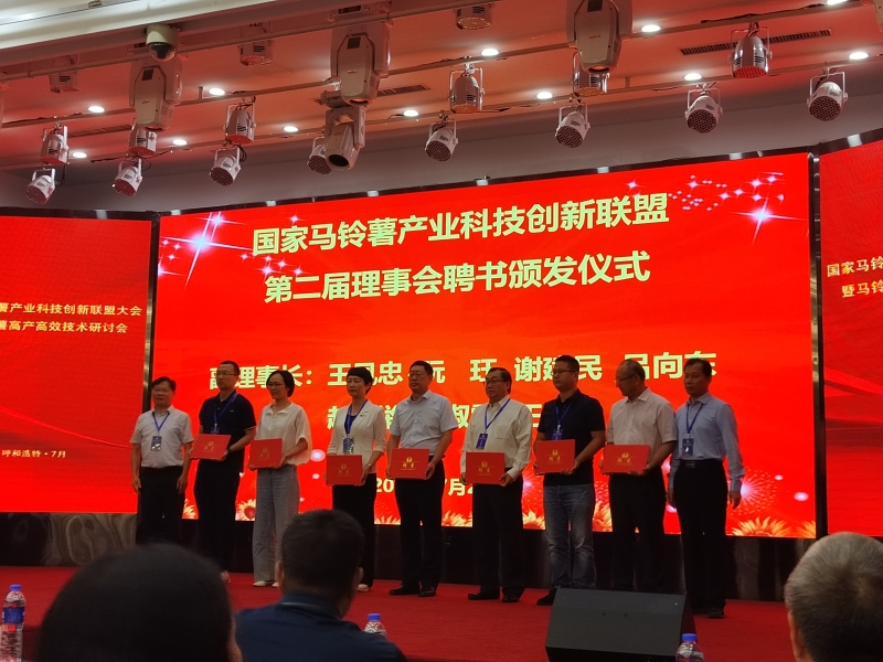 7月23-24日,国家马铃薯产业科技创新联盟大会暨马铃薯高产高效技术研讨会在呼和浩特市召开。会议选举产生了国家马铃薯产业科技创新联盟第二届理事会,中国农业科学院蔬菜花卉所张圣平副所长当选联盟第二届理事长,院党委委员、副院长田青当选副理事长,马铃薯研究所所长马丽荣当选常务理事,马铃薯所和加工所科研人员参加会议。