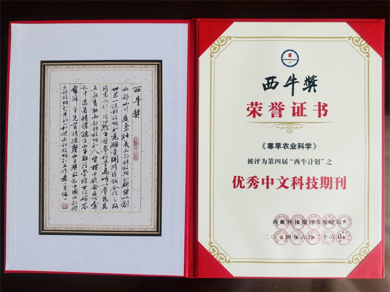 由西部科技期刊发展论坛组委会主办,甘肃省科学技术期刊学会、重庆市科学技术期刊编辑学会联合承办的“第11届西部科技期刊发展论坛”于6月25—28 日在甘肃敦煌召开,我院主管主办的《寒旱农业科学》荣获“西牛奖”之“优秀中文期刊”。
