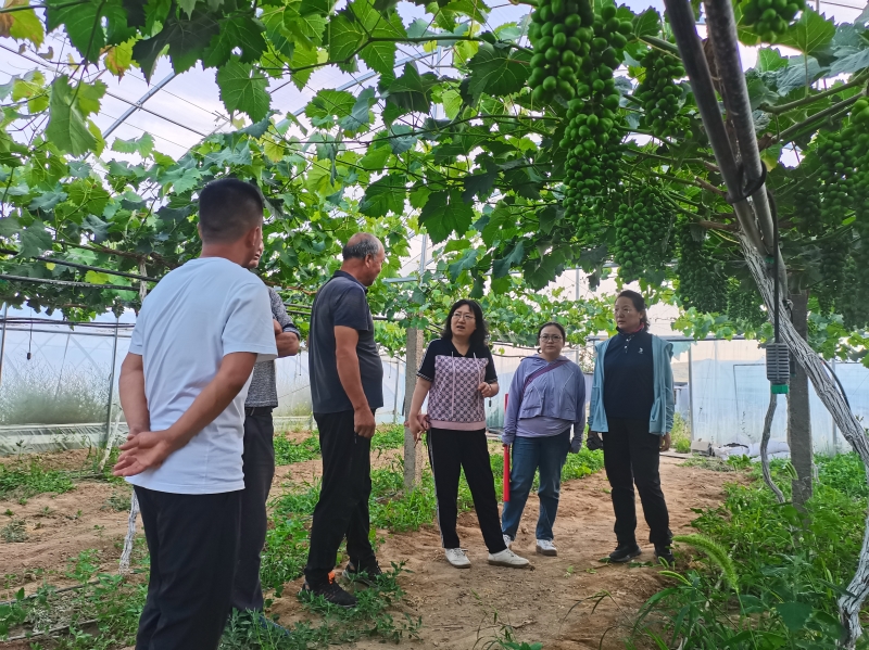 此次培训采取田间现场指导与座谈交流相结合的方式,就设施葡萄水药一体机应用、葡萄幼果膨大期花果管理、靶向滴灌节水技术等多个方面进行了详细讲解与指导,并逐一解答了果农在生产中遇到的技术难题。培训现场发放了微生物有机肥50余袋和技术资料40余份。