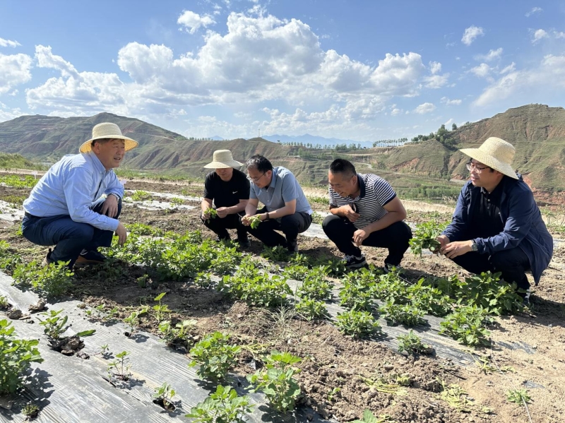 调研组一行在田间地头查看了藜麦试验长势情况,对藜麦出苗保苗等关键环节进行技术指导和现场培训。调研期间,调研组一行聚焦积石山县灾后农业重建重构工作,在产业研究院进行座谈交流,与会双方重点围绕如何将科技“第一生产力”输送到农业一线,联合人才力量协作开展科技帮扶工作进行深入交流。