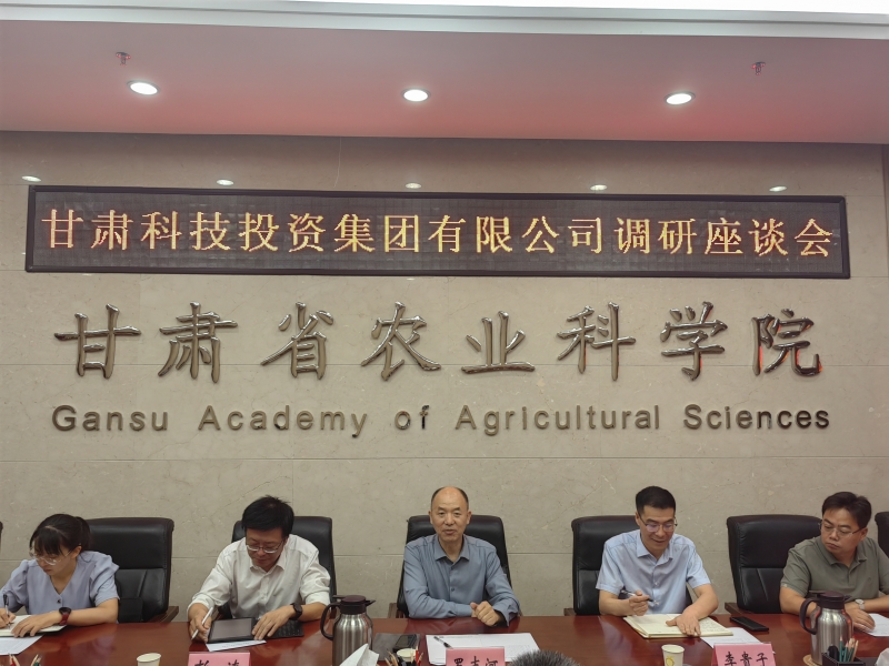 6月5日,甘肃科技投资集团有限公司技术总监罗志河和甘肃省启迪绿色科技董事长李贵子,甘肃省轻工院党委书记、董事长彭涛,甘肃省机械院党委副书记、总经理于文龙及相关人员一行9人来我院调研交流,就加强科技合作,促进成果转化进行深入探讨和交流。院党委委员、副院长杨天育出席并主持会议。