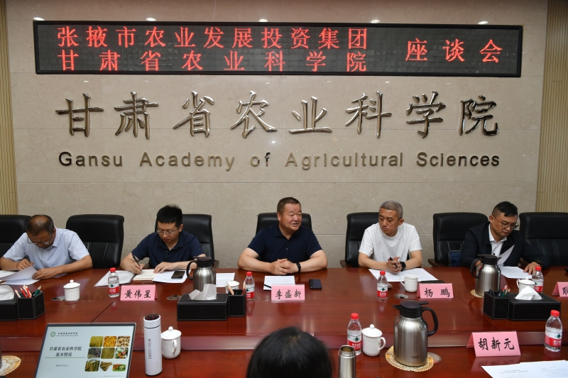 5月24日,张掖市农业发展投资集团党委书记、董事长李盛新一行5人来我院洽谈科技合作事宜。院党委委员、副院长田青主持召开座谈会,有关处室、研究所负责人参加。