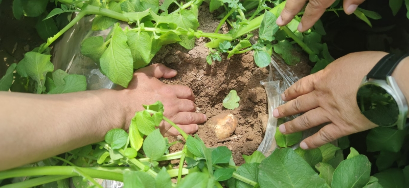 唐汪镇白咀村光伏大棚马铃薯的生长、结薯情况