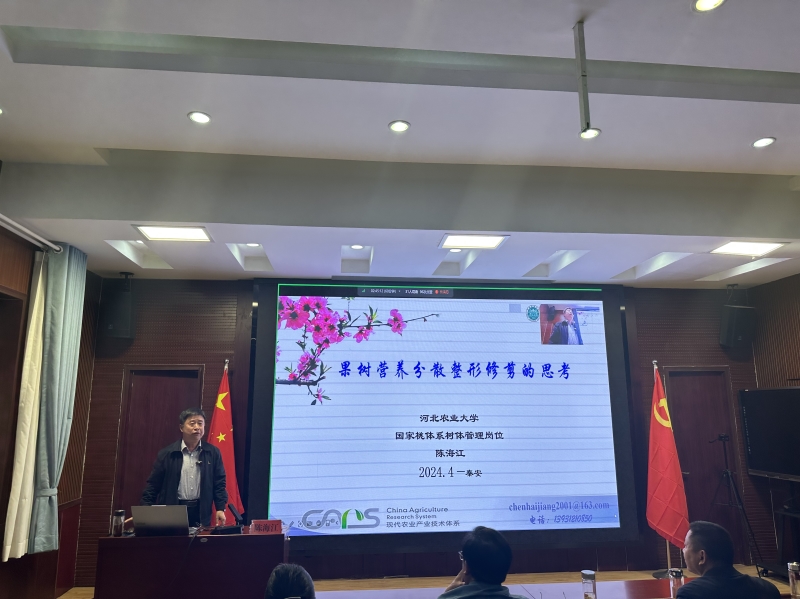 4月15日,我院林果花卉研究所秦安试验站在天水市秦安县组织举办了体系专家进桃园技术培训活动。活动邀请了国家桃产业技术体系遗传改良研究室岗位科学家王力荣研究员、栽培与土肥研究室岗位科学家陈海江研究员,专家对试验站在秦安县这么多年来的努力工作给予了高度评价,对试验站推广的良种良法配套栽培技术与服务农业产业发展的水平给予了充分肯定,认为其在推动乡村振兴战略实施奠定了坚实基础。培训过程中,专家对魏店镇、莲花镇果农提出的一些问题进行详细解答,并围绕“桃优良品种与高效栽培技术”、“果树营养分散整形修剪的思考”等主题开展了专题讲座,讲座采取线上线下相结合的方式同步进行,为全县桃产业科学发展、合理种植提出宝贵意见,讲座获得了果农及技术人员的一致好评。我院林果花卉研究所王卫成书记、王发林研究员、王晨冰研究员、牛茹萱副研究员和秦安县果业局技术人员陪同考察调研。