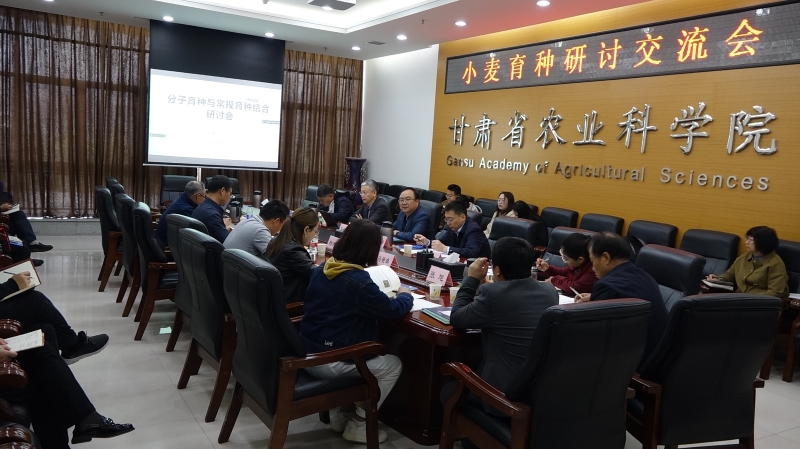 410日,由小麦研究所和九圣禾种业共同主办的分子育种和常规育种结合研讨会在我院召开。本次会议邀请了甘肃、青海、宁夏、内蒙古、中国科学院作物科学研究所以及华智生物技术有限公司等育种单位的小麦专家和科研骨干参加,黑龙江、新疆等地的小麦专家在线上参加会议。会议由九圣禾种业有限公司产品官王长海和我院小麦研究所所长展宗冰共同主持,采取线上线下相结合的方式举行。