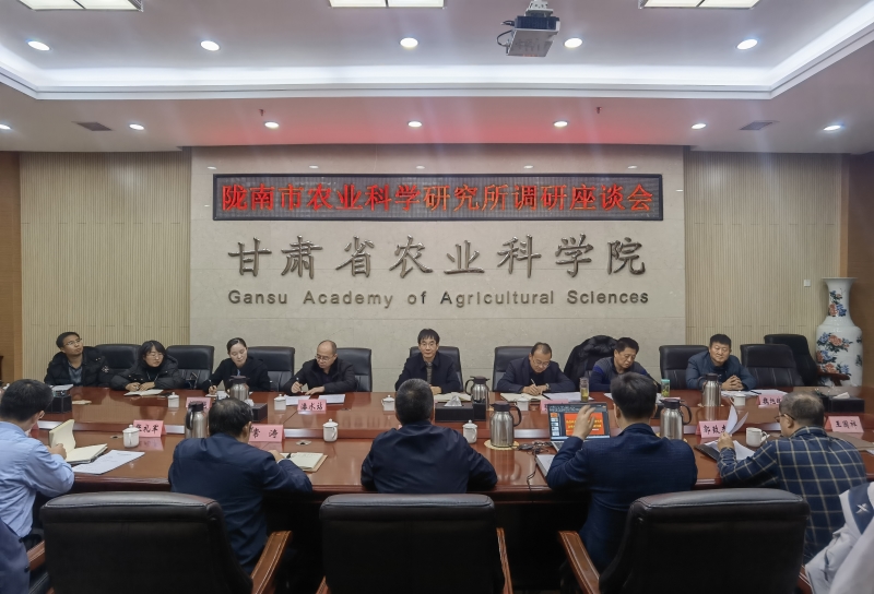 12月15日,陇南市农业科学研究所所长金锋、副所长张杰,带领所办公室、科管科、中药材室负责人及相关科技人员一行来院调研交流。院党委委员、副院长杨天育主持座谈会,院办公室、科研管理处、合作交流处、植物保护研究所、马铃薯研究所、经济作物与啤酒原料研究所负责人及相关专家参加了座谈。