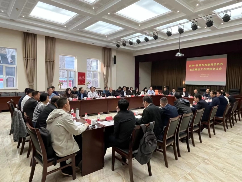 在东西部科技协作对接会上,杨天育介绍了我院参与东西部科技协作的整体情况,结合东西部科技协作对接要求和我院优势学科及全省特色产业发展需求,提出津甘合共建科技创新平台、申报联合基金,以科技项目为载体,支持津甘两地科研院所、高等院校跨区开展产学研协同创新,持续强化科技成果转化,支持特色产业发展等建议。