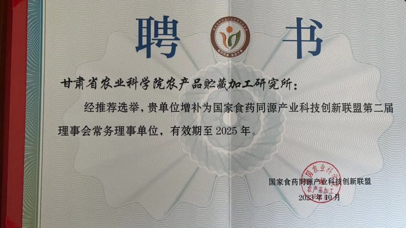 本次联盟会议决定:甘肃省农业科学院农产品贮藏加工研究所增补为国家食药同源产业科技创新联盟第二届理事会常务理事单位。