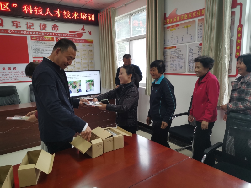 10月16-18日,三区“果树新品种引进与新技术推广应用团队”王玉安研究员在麦积区新阳、社棠镇开展了题为“葡萄绿色高质高效生产关键技术”的科技培训。王玉安研究员根据麦积区葡萄产业发展需求,从品种优化、花果管理、水肥利用、绿色生产、机械利用、防灾减灾、保鲜加工等方面做了全面系统的讲解,对指导麦积区下一步葡萄产业健康高效发展具有积极作用。受援单位科技人员及果农共计60人参加了培训,发放果树修枝剪60把。