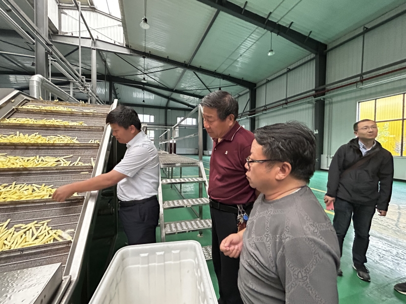 胡宏海、李小波等专家赴东乡县达板镇经济开发区,参观了甘肃方大百泉农业科技有限公司薯条加工厂,考察薯条加工设备设置等全部流程,重点观察切条规范程度,清洗、干燥分级、油炸等设备运行流畅状况,薯条产出率与质量等指标,就生产中存在问题探讨了解决途径与办法。赴马铃薯研究所榆中试验站考察了现有加工型新品系及筛选加工型新品系的加工测试设备,并对加工流程进行了详细询问,针对提高筛选效率及准确度,进行了现场指导。