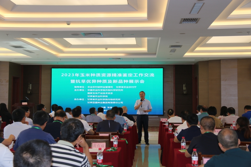 8月25-27日,玉米种质资源精准鉴定工作交流暨抗旱优异种质及新品种展示会在张掖举办。农业农村部种业司吴凯锋处长、甘肃省农业农村厅二级巡视员杨玉杰及中国农业科学院作物科学研究所、甘肃省农业科学院、张掖市农业农村局相关人员出席会议,农业农村部玉米种质资源精准鉴定专项成员单位、国家玉米产业技术体系岗位科学家和综合试验站代表、甘肃省科技重大专项成员单位代表、相关企业代表、农民日报等新闻媒体代表共计150余人参加了此次会议。院科研管理处副处长李国锋致辞。