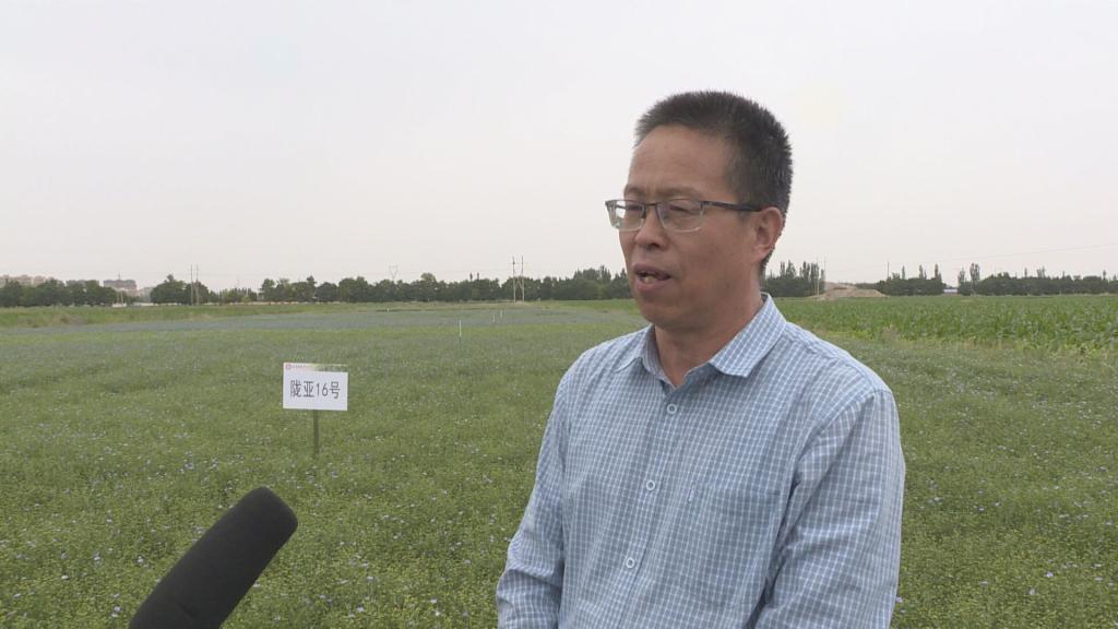 甘肃省农业科学院作物研究所党委书记 张建平:我主要搞油料品种选育和推广,我们在景泰开展胡麻新品种选育已经有三四十年的时间了,我们在这个基地选育了大量品种,今天看到的是我们新育成的一批新品种,含油率有很大提高,丰产性也非常高,特别是抗病性这一块,都是能满足我们的生产需要的,这些品种推广后会对景泰胡麻生产有一个很大的推动作用。