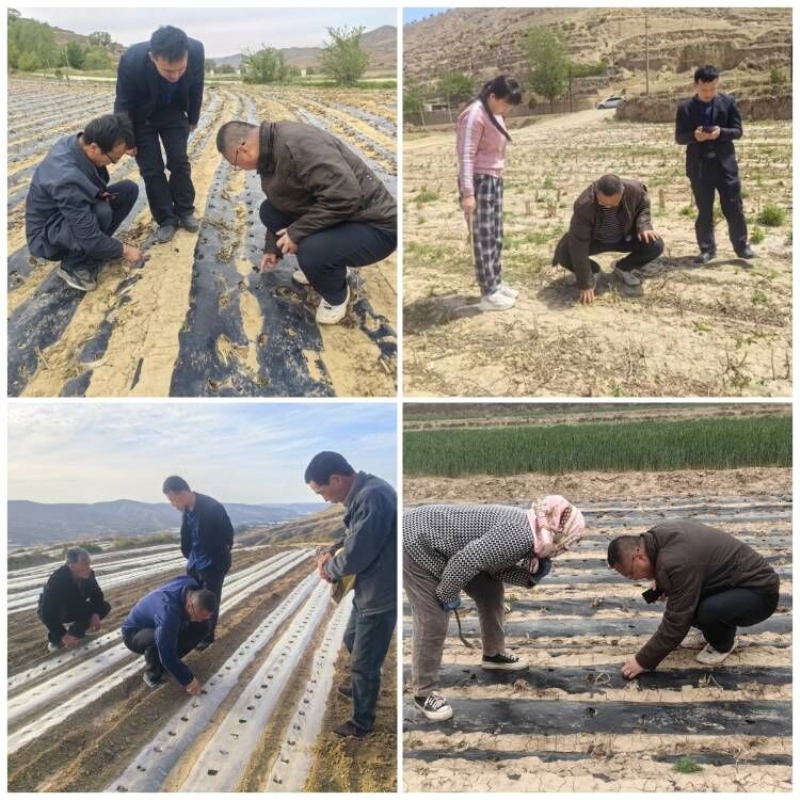 近期,会宁县受冷空气的影响,部分乡镇农作物受到了霜冻侵害。5月23日,国家谷子高粱产业技术体系科技特派团成员董孔军研究员带领团队成员深入会宁县中川镇高陵村和高庙村、平头川镇任湾村、四房吴镇四房吴村、党家岘乡新民村,与种植大户、合作社对接调查谷子出苗、霜冻情况。经调查上述村社累计完成地膜谷子播种面积2470亩,谷子出苗整体情况良好,近期发生的霜冻对播种较早、幼苗生长较快的谷子叶片产生冻害。专家团队建议种植户继续观测,根据苗情分化,对于穴苗少、空穴的及时进行补种,同时指导种植户做好田间放苗工作,加强田间管理,为保证谷子高产高效做好相关工作。