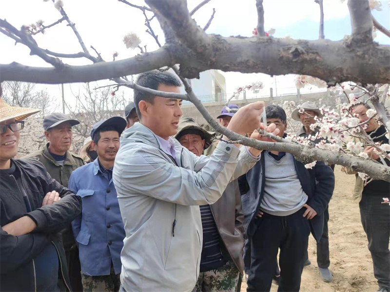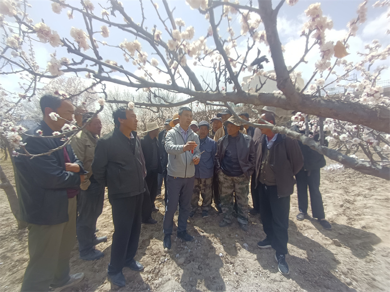2023年4月14日,林果花卉研究所“三区”服务团队“高寒山地林果花卉提质栽培技术服务团”成员王玮副研究员赴榆中县和平镇豆家山村开展科技培训服务。