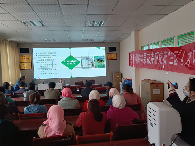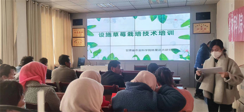 2023年3月17日、21日、23日,林果花卉研究所党总支书记副所长王卫成带领科技人员汤玲、杨馥霞、贺欢赴永靖县三塬镇下塬村、富景农民种植专业合作社及陈井村开展了三区科技人才专项培训服务。针对永靖县草莓主产区草莓品种更新慢、连作障碍凸显、育苗管理工作粗放、病虫害日益严重等问题进行了技术培训和现场指导,培训种植农户140人次,现场发放矿源黄腐酸钾及福.福锌可湿粉剂各140袋。