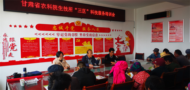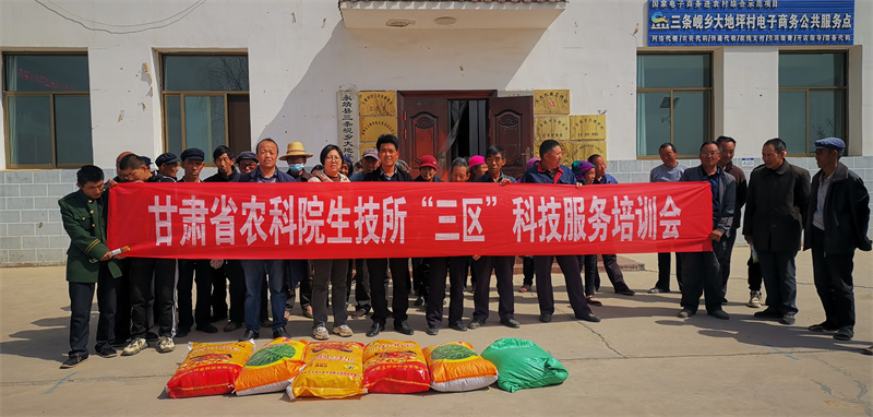 2023年3月28日,我院生物技术研究所“特色作物高产栽培”三区服务团队成员崔文娟在永靖县三条岘乡大地坪村开展三区科技培训服务,根据服务村发展饲草种植及肉羊养殖,畜牧循环发展需求,针对服务村对饲草高粱种植及生产应用技术掌握不够,邀请甘肃省农业科学院作物研究所专家葛玉彬副研究员对饲草高粱种植、田间管理及刈割期的科学选择及饲喂利用等方面的技术知识细致讲解,对饲草高粱生产应用关键技术环节做了着重强调。培训现场专家服务团队与当地技术骨干和种植户30余人广泛交流,并结合春播开展良种发放,提供玉米品种陇单339良种60袋、饲草高粱陇草1号30公斤、燕麦良种定燕2号50公斤,发放技术培训资料50余份。