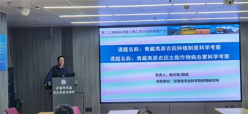 会上,杨天育就承担课题“青藏高原农田种植制度科学考察研究和青藏高原农田系统病虫害科学考察研究”的第二期工作计划和预期产出做了汇报。与会人员对科考报告各章节进展进行交流讨论。