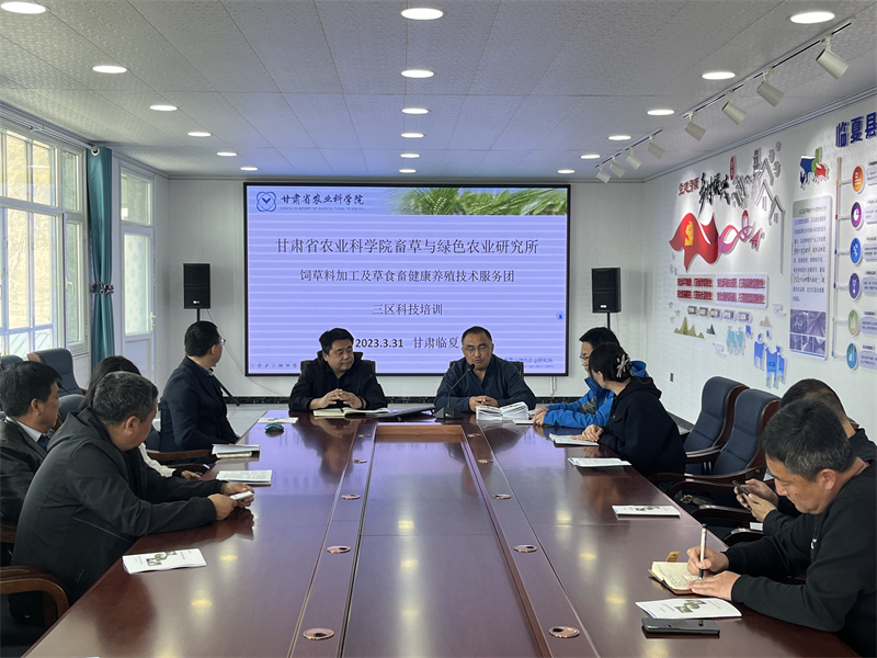 为进一步发挥科技支撑引领现代农业发展,认真贯彻省委“四强”行动工作部署,2023年3月31日,畜草所组织“饲草料加工及草食畜健康养殖技术”三区服务团成员陈平、王国栋、邹凤轩、金茜、谢建鹏,赴临夏县开展技术培训和技术服务,临夏县科技局高嘉陵副局长参加培训会议。