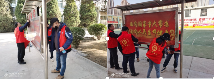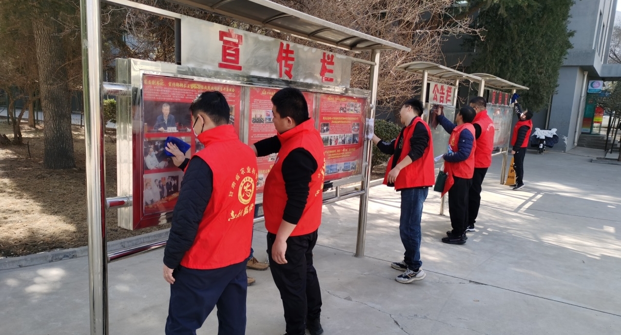 3月3日下午,我院青年志愿者积极响应院青工委、院团委号召开展“卫生清洁”志愿服务活动。青年志愿者们热情洋溢,干劲十足,不怕脏、不怕累,积极践行“奉献、友爱、互助、进步”的志愿精神,集中对我院内各处标语牌,宣传栏、公告栏等公共设施进行擦洗清理,让院容院貌焕然一新,以实际行动书写新时代的雷锋故事。