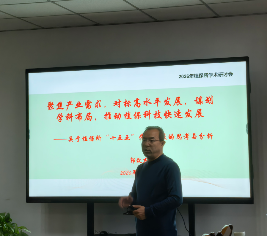 3月17日,我院植物保护研究所召开2026年度学术交流会。会议以“绿色赋能·创新驱动·守护农业安全”为主题,聚焦农业病虫害绿色防控技术革新与生态可持续发展,旨在促进学科交叉融合,激发创新思维,破解植保关键瓶颈,发展新质生产力,为保障国家粮食安全、推进农业绿色转型提供科技支撑。全所科技人员及在读研究生参加了会议。