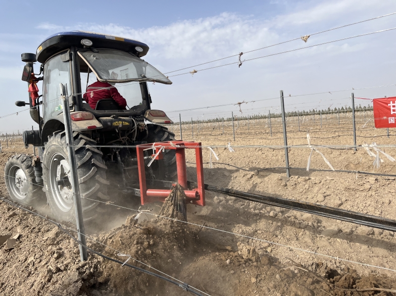 徐丽明教授通过葡萄清土机、卷膜机相关专业技术讲解、实景实操演示、现场互动交流等多种形式,直观呈现了清土机和卷膜机的高效作业效能,同时讲解了适宜不同栽培模式的新型机械,如避障除草剂、双面埋土机、牵引式/悬挂式农药机等;王振平研究员针对酿酒葡萄的出土上架、抹芽、防霜冻等春季管理技术进行了培训;郝燕研究员总结了葡萄生产全程机械化作业的技术要点,并就不同颜色、密度和宽度的防寒布使用效果开展了调研。