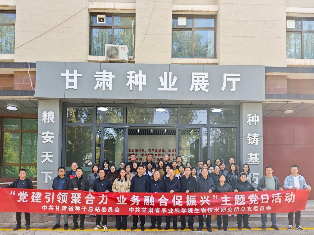 为深入学习贯彻党的二十大和二十届四中全会精神,推动党建与业务深度融合,10月30日下午,我院生技所党总支与甘肃省种子总站党委联合开展“党建引领聚合力、业务融合促振兴”主题党日活动。