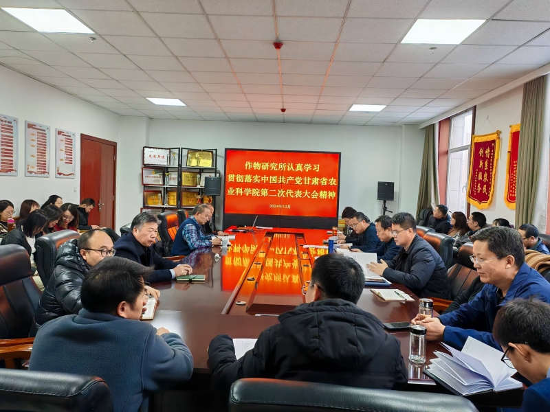 会上,传达学习了习近平总书记在中央农村工作会议上对做好“三农”工作的重要指示批示精神。专题学习了院党委书记刘国汉代表中共甘肃省农业科学院第一届委员会作的题为《聚力改革加快推进高水平农业科研院所建设、为支撑甘肃现代寒旱特色农业发展而团结奋斗》的报告、《中国共产党甘肃省农业科学院第二次代表大会关于中共甘肃省农业科学院委员会报告的决议》《关于中共甘肃省农业科学院纪律检查委员会报告的决议》,并对贯彻落实会议精神进行了安排部署。