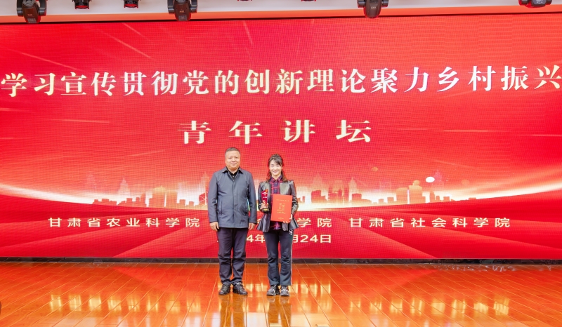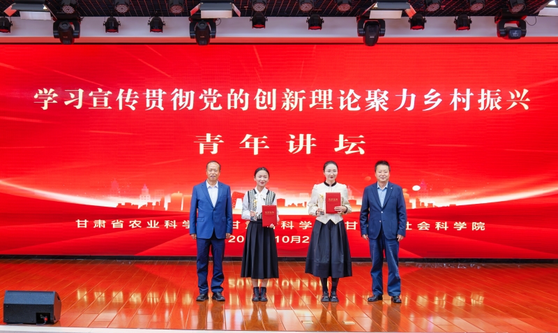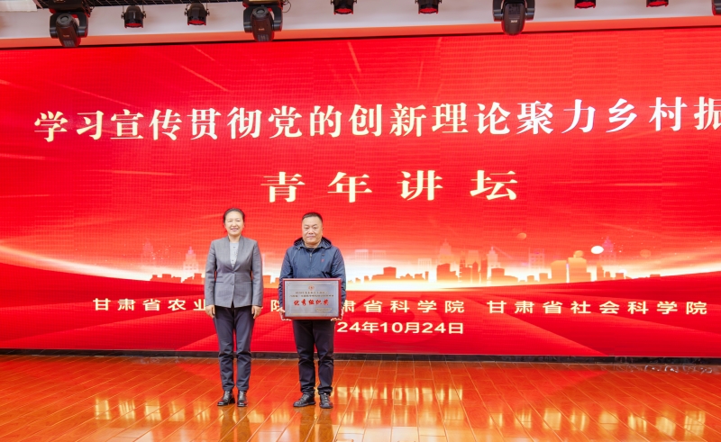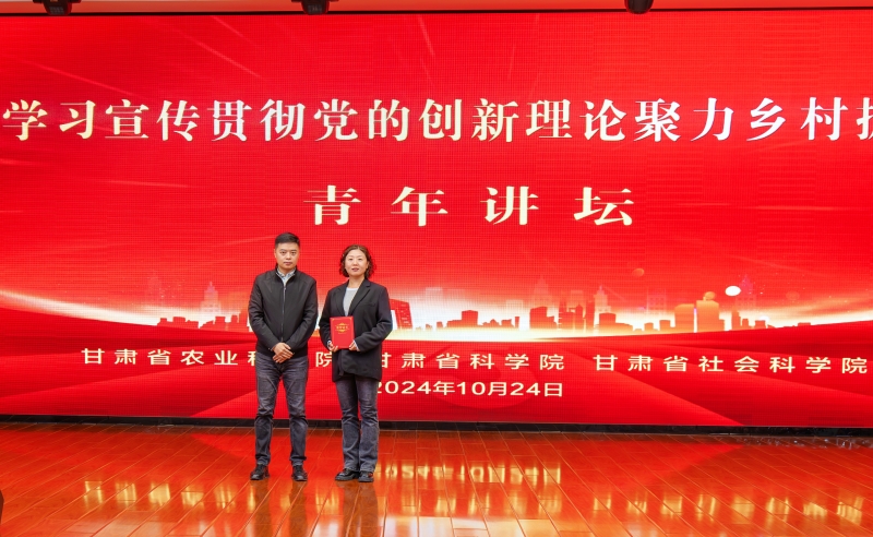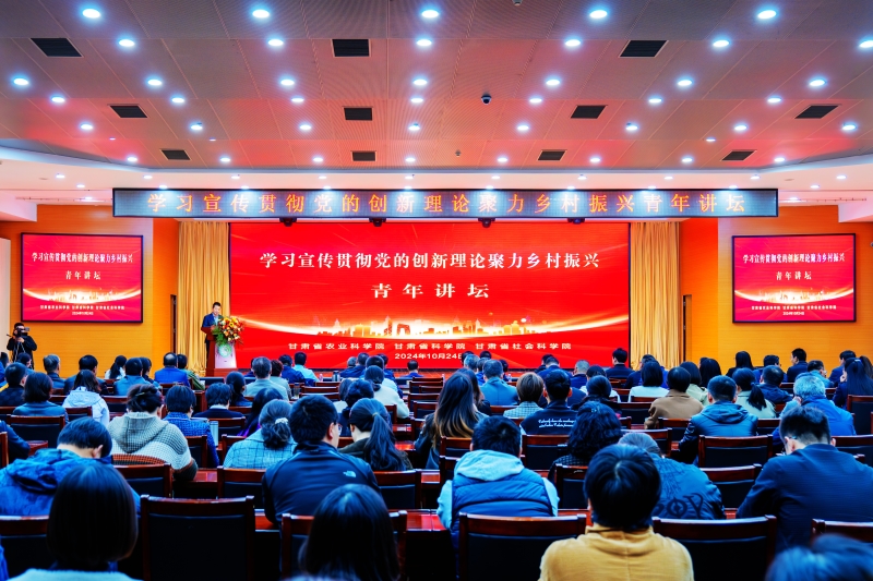 为深入学习宣传贯彻党的二十届三中全会精神和习近平总书记视察甘肃重要讲话和指示精神,加强省属科研院所交流互鉴,10月24日,甘肃省农科院、甘肃省科学院、甘肃省社科院共同举办“学习宣传贯彻党的创新理论聚力乡村振兴”青年讲坛。省委直属机关工委副书记吴俏燕出席活动并讲话,省农科院党委书记刘国汉出席并致辞。省农科院院长、党委副书记常宏,省社科院党委委员、副院长陈永胜,省农科院领导班子成员樊廷录、李允、杨天育出席。