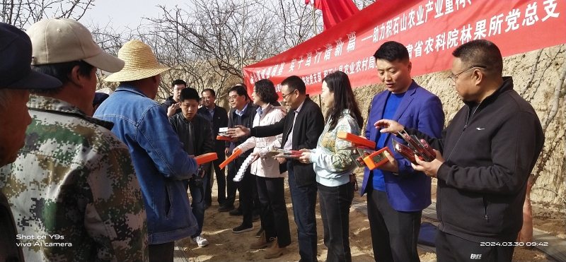 林果花卉研究所党总支、积石山现代农业产业研究院临时党支部、积石山县农业农村局党组全体党员,来自省内外专家,院党办、院团委、青工委有关同志,积石山县银川乡种植户、技术人员300余人参加了此次活动。