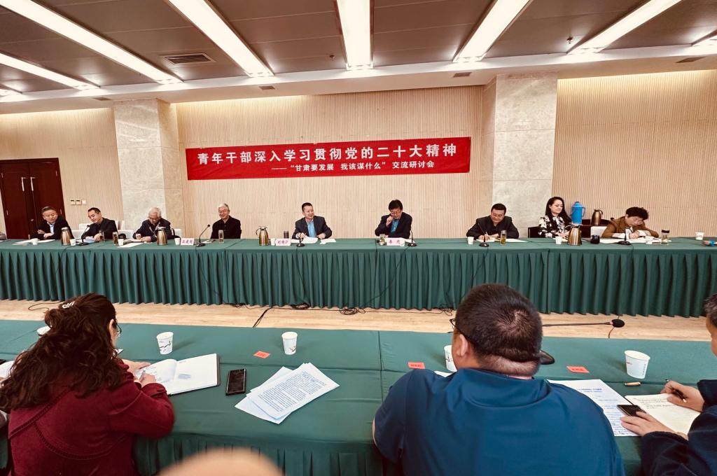 3月17日,院青工委、院团委组织召开青年干部深入学习贯彻党的二十大精神暨“甘肃要发展,我该谋什么”交流研讨会。院党委书记刘国汉出席会议并讲话,勉励广大青年干部要胸怀大志向、心有大格局、行有大作为,在追求真理、勇攀高峰的科学探索和躬行为民、积极奉献的光荣实践中,踔厉奋发、无悔芳华。党委委员、纪委书记李允,党委委员、党办主任汪建国到会指导,党委办公室副主任、院青工委主任王来主持会议。