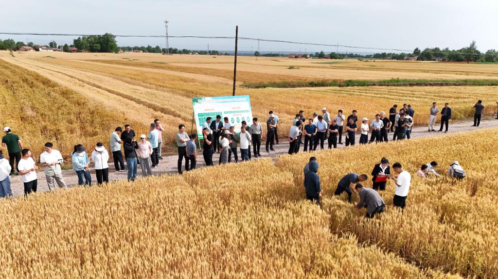 2025年6月13-15日,国家重点研发计划项目“西北地区玉米、小麦、油菜大面积单产提升关键技术及集成示范”在灵台县和镇原县召开旱塬冬小麦大面积单产提升现场观摩交流会。与会人员现场见证了项目在降解膜覆土穴播、沟播、镇压、适期晚播、耧施化肥等技术的增产效果,及陇鉴系列抗旱冬小麦品种在干旱年的抗旱增产效果。