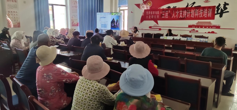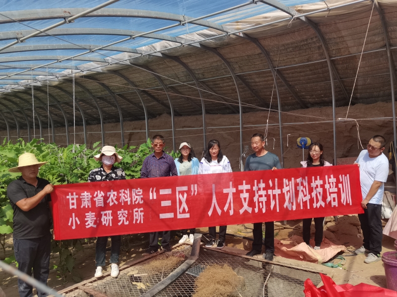 9月15日-17日,小麦所科技人员张雪婷、郭莹赴古浪县黄花滩镇长兴新村开展“三区”技术培训及科技咨询服务工作。应黄花滩镇蔬菜种植等农业生产特性需求,邀请蔬菜所科技人员刘明霞,针对大棚种植的茄子、辣椒、番茄、黄瓜在品种选择、科学施肥、温湿控制、病虫害综合防控等方面进行讲解。举行现场培训会议2场,培训农户100余人,发放营养肥料1600袋,抗菌、抗霉农药1600袋以及牛羊饲用舔砖2吨,培训材料100余册。