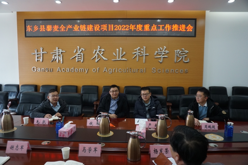 2月22日,东乡县藜麦全产业链建设项目2022年度重点工作推进会在我院召开。中国石油化工股份有限公司河北石油分公司副总经理钱有,中国石化集团公司乡村振兴办处长严超,甘肃省东乡县委常委、副县长毛凯,中国石化甘肃石油分公司周鹏超,畜草所所长马学军、副书记谢志军,藜麦团队负责人杨发荣研究员及团队成员参加了会议。
