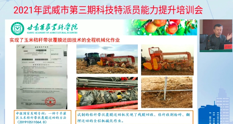 11月24日至26日,2021年第三期武威市科技特派员能力提升培训及学术交流会在武威召开,本次培训由武威市科学技术局主办,甘肃农业大学草业学院、甘肃省农业科学院土壤肥料与节水农业研究所和武威市生产力促进中心共同承办。会议邀请天津市农学院、天津市农科院、甘肃农业大学和甘肃省农业科学院相关专家学者对武威市科技特派员进行授课培训。