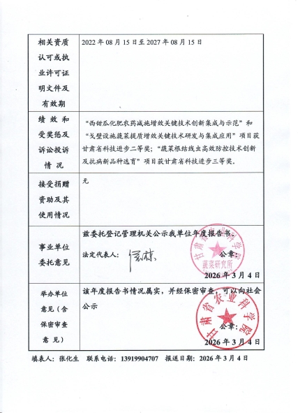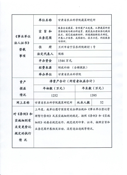 根据甘肃省事业单位登记局法人证书年检流程,现将我单位2025年度事业单位法人年度报告书在院局域网予以公示,对报告书填写内容的真实性给予监督。