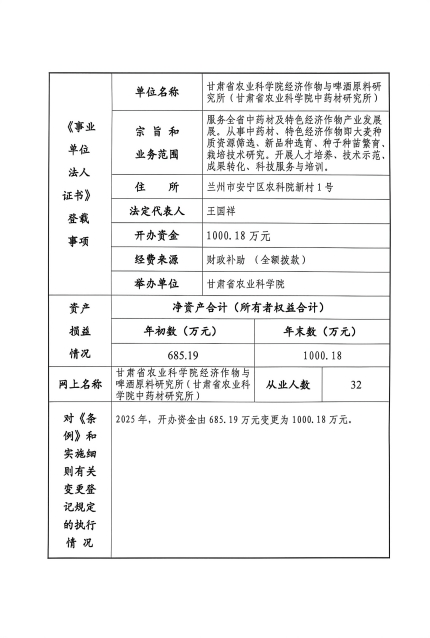根据甘肃省事业单位登记管理局法人年检流程,现将我单位2025年度事业单位法人年度报告书予以公示,对报告书填写内容的真实性给予监督。