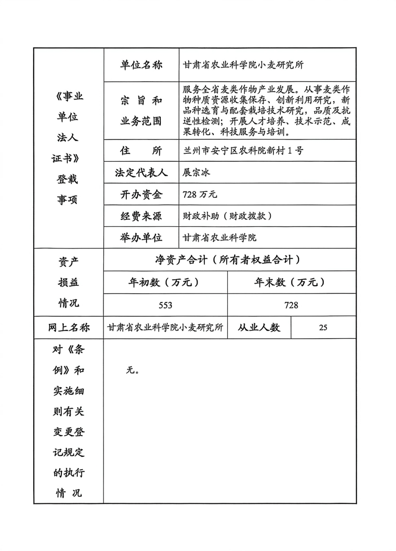 根据甘肃省事业单位登记局法人证书年检流程,现将我单位2025年度事业单位法人年度报告书予以公示,对报告书填写内容的真实性给予监督。