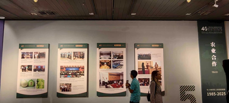 活动现场,田青与俄克拉荷马州立大学教授进行了亲切交流,双方围绕中美农业合作基础、两省州农业发展特色等内容进行沟通,为后续潜在的交流互动奠定良好基础。此外,我院凭借长期参与中美农业合作的优势,精心梳理历年珍贵影像,为图片展“农业合作”板块提供30余幅图片。这些图片全面呈现双方在农业技术研发、品种改良、种植模式交流、农业人才培训等领域的合作足迹——涵盖从干旱地区作物适应性研究到优良牧草品种试种推广,从科研人员互访学习到联合举办技术研讨会,每幅图片均成为中美务实合作的生动见证。