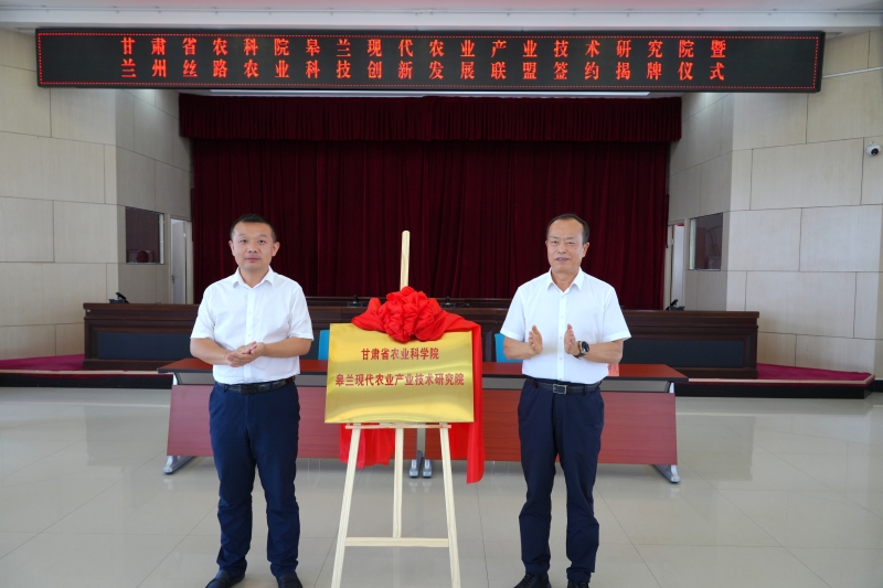 7月7日,甘肃省农业科学院皋兰现代农业产业技术研究院在皋兰县正式揭牌成立。院长、党委副书记常宏和皋兰县委书记康石共同为“皋兰现代农业产业技术研究院”揭牌。仪式由皋兰县委副书记、县长沈毅主持。