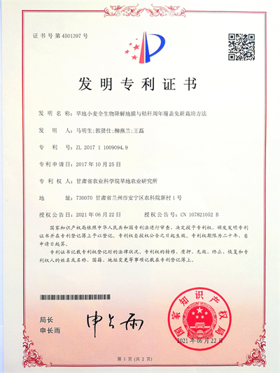 应用范围:该技术优势明显,可在降雨量350-550mm的西北旱作区大面积推广应用。