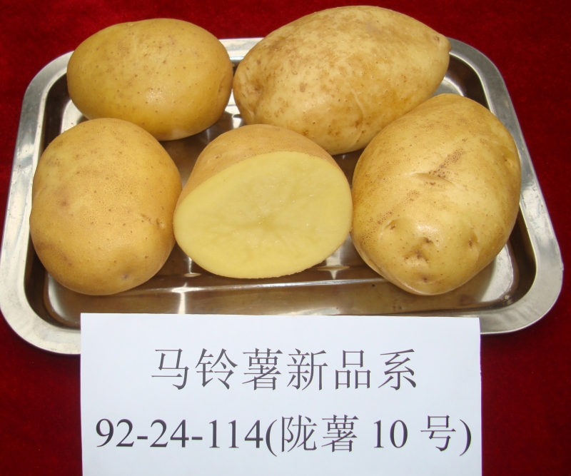 陇薯10号(系谱号92-24-114)是由甘肃省农业科学院历时22年育成的抗旱优质马铃薯品种,先后通过成果鉴定、品种审定、品种标准发布和品种登记,入选2022年全国100项重大农业科技成果、2023年国家农作物优良品种推广目录。具有以下突出特点:
