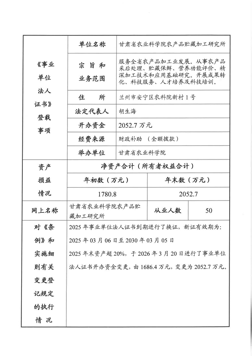 根据甘肃省事业单位登记局法人证书年检流程,现将我单位2025年度事业单位法人年度报告书予以公示,对报告书填写内容的真实性给予监督。