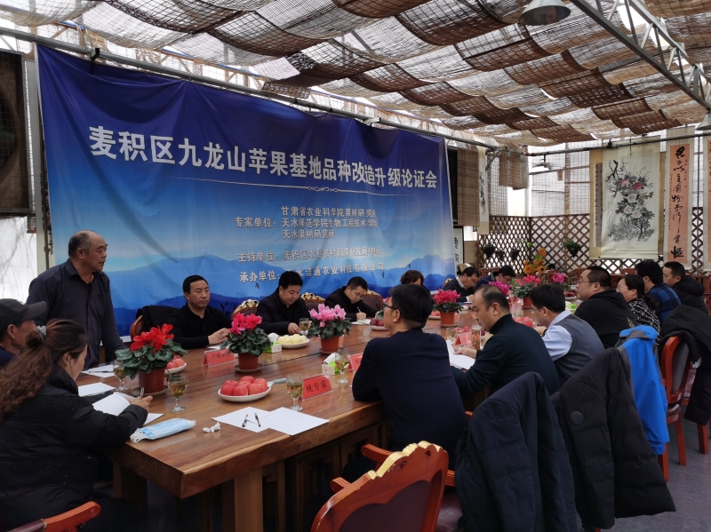 2022年1月8日,应天水国家科技示范园区管委会和天水洁通农业科技有限公司邀请,甘肃省农业科学院林果花卉研究所所长、研究员王鸿、刘小勇、郝燕、副研究员赵明新和助理研究员唐小刚对天水洁通农业有限公司九龙山老果园改造升级方案进行现场论证。该公司现有苹果园面积1300亩,种植在海拔1100-1350m之间,为改变劳动力用工集中,用工费用高,产值低等问题,计划改造果园300亩用于桃、葡萄、梨和樱桃种植,增加抵御风险的能力,缓解苹果集中采摘期劳动力集中无工可用的问题。