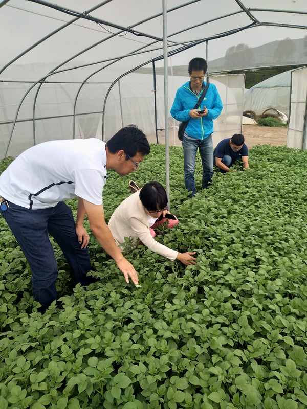 在马铃薯研究所所长吕和平研究员和一航薯业总经理陈富陪同下,考察团参观了马铃薯所脱毒繁育中心、会川种薯繁育基地以及定西鲁家沟百泉公司节水灌溉种薯基地。2017年7月由马铃薯研究所自主选育的陇薯7号通过广东省品种审定,2018年作为广东省马铃薯唯一主导品种推广。本次广州市农业推广中心重点针对陇薯7号脱毒繁种体系、节水灌溉以及北繁南种等项目进行了调研,为陇薯7号在广东省冬播区扩大推广种植奠定基础。