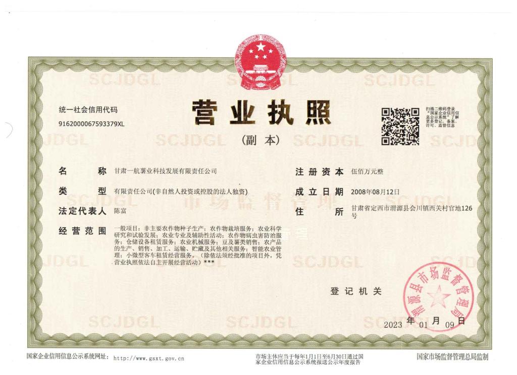 公司成立于2008年8月,是以甘肃省农科院马铃薯研究所为技术依托的科技型企业,注册资金500万元。公司是专业从事马铃薯脱毒苗组培快繁、脱毒种薯繁育经销、新品种示范推广、科技开发及技术咨询服务。公司的主要职能是推广和转化甘肃省农科院马铃薯所选育的新品系(种)及研发的新技术,加速科技成果快速转化应用于实践生产。