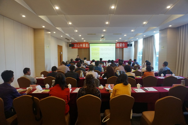 受四川省凉山彝族自治州农牧局、农科所邀请,4月7—10日,我院副院长李敏权带领杨发荣研究员及其团队科技人员,赴四川省西昌市参加“凉山州藜麦品种引进试验示范技术培训会”。培训会上,杨发荣研究员对凉山州农科所及州属13个县的科技人员进行了藜麦种植技术培训。从藜麦的特征特性、营养价值、国内外研发现状、应用开发、种植技术、发展前景等多个层面全方位、多角度对藜麦产业进行了讲解。会后在凉山州农科所试验基地开展了现场培训和生产指导。