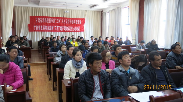 培训会由甘南州农科所所长王三喜主持,甘南州农办副主任李世雄、州发改委黄河办生态办公室主任王辉生、州农牧局种植业科科长魏志远、州农牧局科教科科长陈智新一同参加,科技人员杨发荣、董俊、蔡子平、何振富分别就“甘肃藜麦研发现状及发展前景”、“肉牛高效育肥与科学饲养管理技术”、“中药材种植与病虫害防治技术”及“甜高粱种植与利用技术”进行了讲解,并围绕当地特色产业和主导产业的发展现状及存在问题与农民进行了交流,现场答疑解惑。甘南州1市7县的农技站、畜牧站干部及种养大户102人参加了培训,培训会得到了当地政府及农民的高度评价。