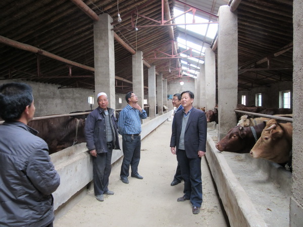 5月21日至22日,畜草所党总支书记、副所长杨发荣及副所长苏永生带领“三百”科技行动项目组成员一行4人赴会宁县新添堡乡道口村,开展“三百”增产增 收科技行动。项目组一行就道口村的牛羊养殖情况和饲草料资源情况进行了深入调研,详细了解在圈舍建设、饲养管理、疫病防治和青贮饲料制作等方面存在的具体 问题,并据此制定了下一步“三百”科技行动的具体实施方案。