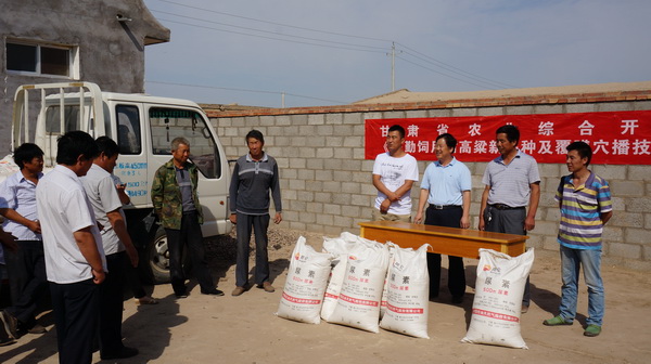 6月28-29日,畜草所在民勤县大坝乡八一村就甘肃省农业综合开发项目《民勤饲用甜高粱新品种及覆膜穴播技术示范》开展了科技培训及田间技术指导。民勤 县农业综合开发办公室张宏贤主任、大坝乡政府农业科技推广人员、项目村的村干部和农业科技示范户等60多人参加了本次培训。